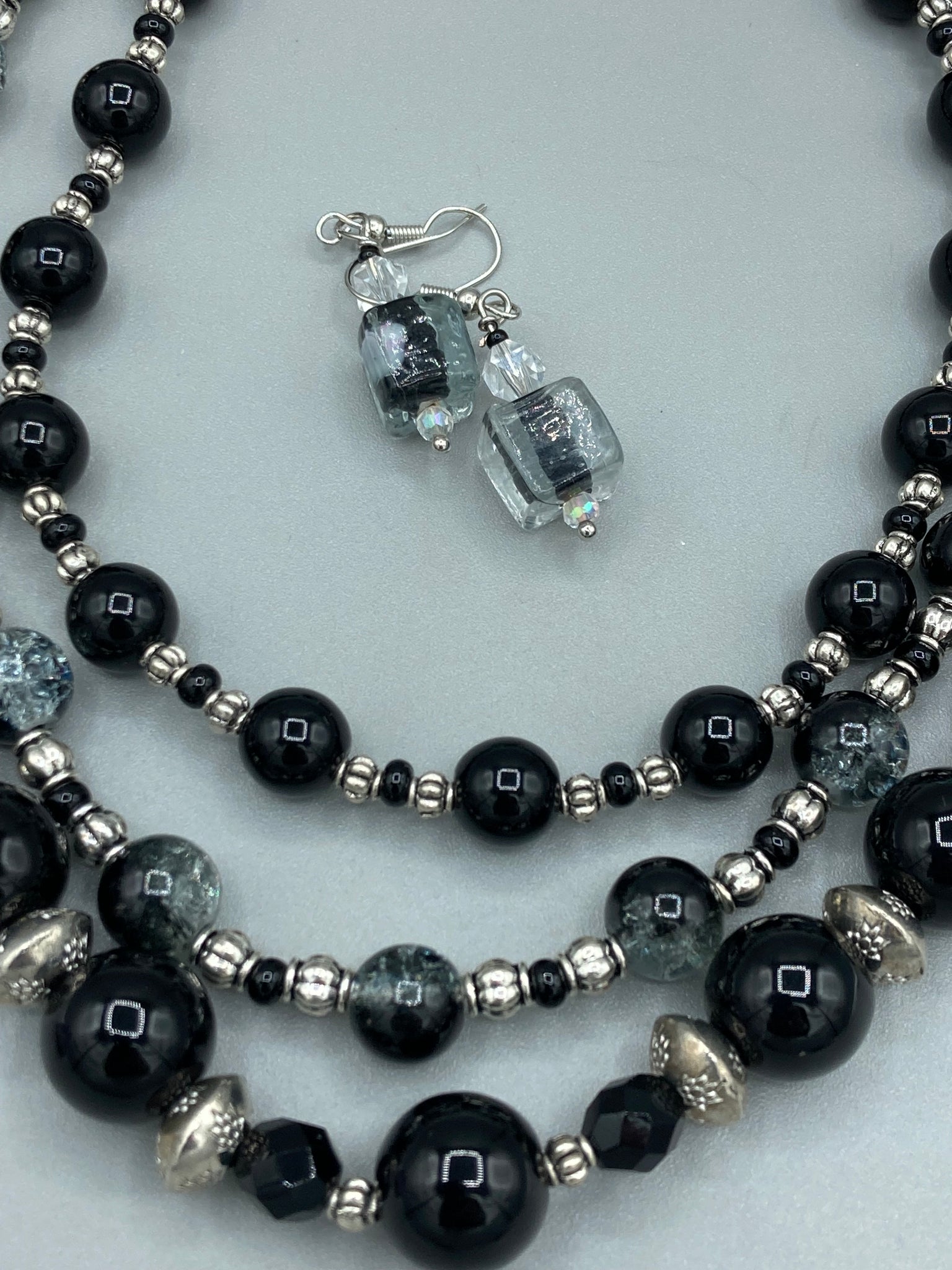 Due to small glass beads in between larger beads, make sure you hang your necklace to retain its shape. One of a kind jewelry, I do not duplicate designs exactly like each other. Dark, beautiful, unique gift for the bold.