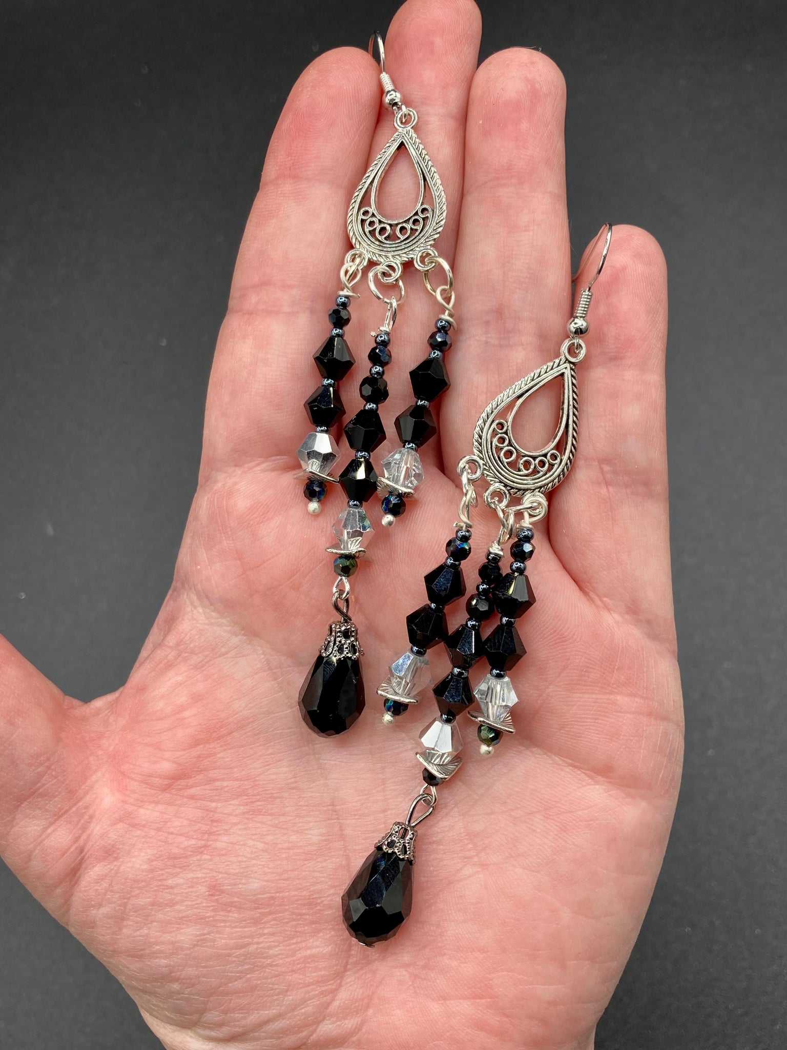 Due to small glass beads in between larger beads, make sure you hang your necklace to retain its shape. One of a kind jewelry, I do not duplicate designs exactly like each other. Dark, beautiful, unique gift for the bold.