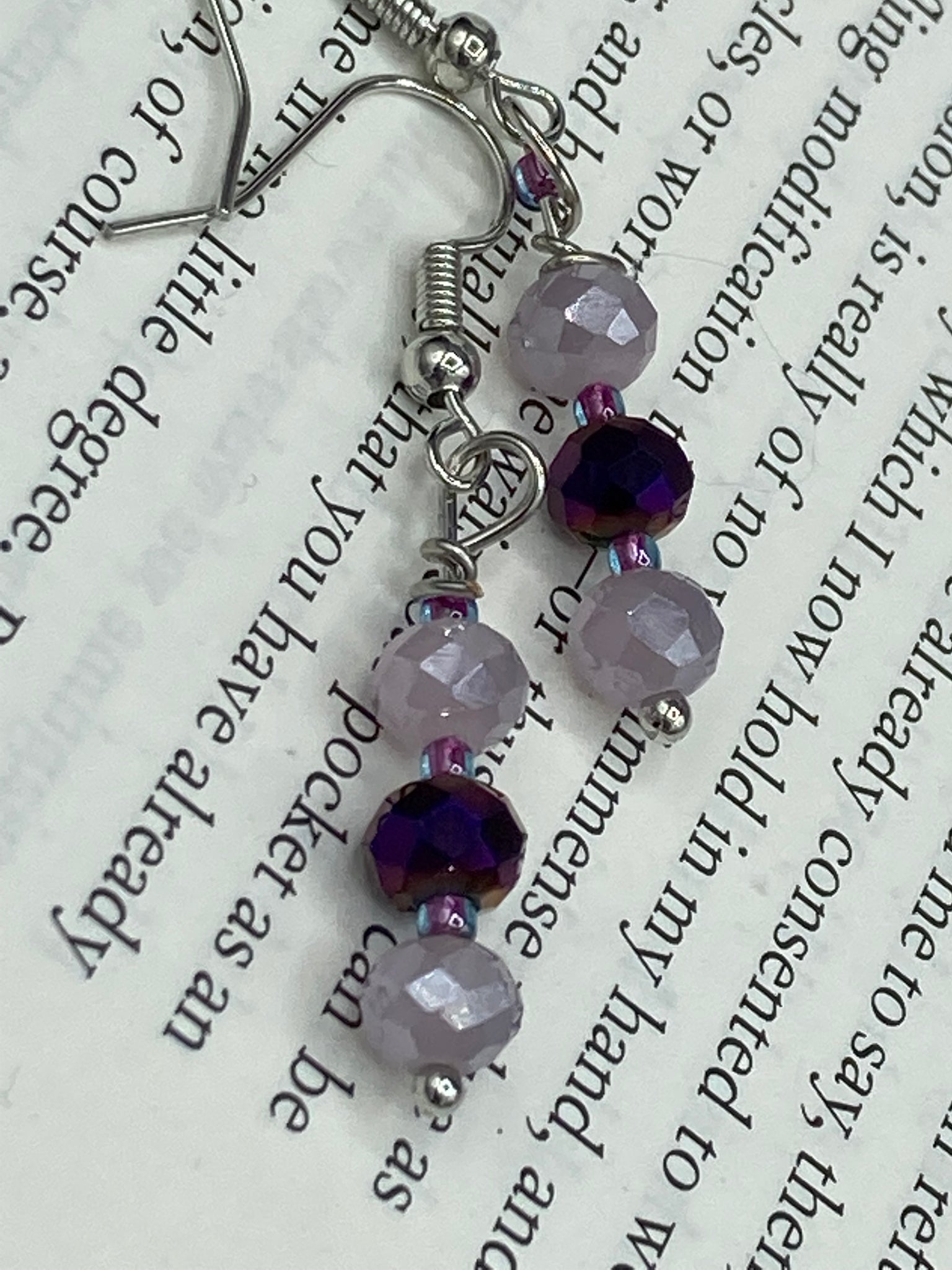 Dainty dusty rose and shimmery dark purple glass beaded earrings are perfect for summer outfits, hippie nature lovers looks, these earring will compliment any look.