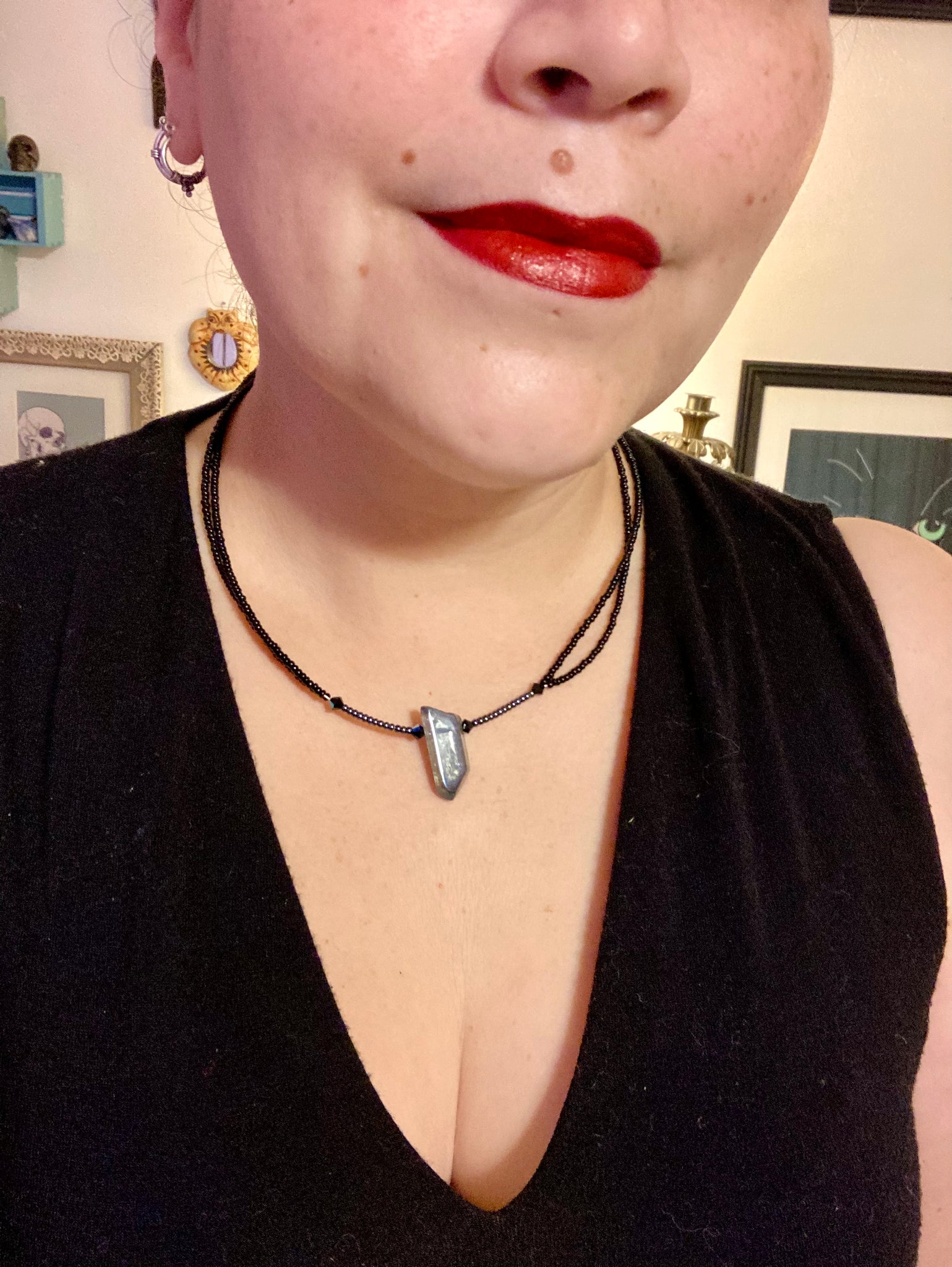 Due to small glass beads in between larger beads, make sure you hang your necklace to retain its shape. One of a kind jewelry, I do not duplicate designs exactly like each other. Dark, beautiful, unique gift for the bold.