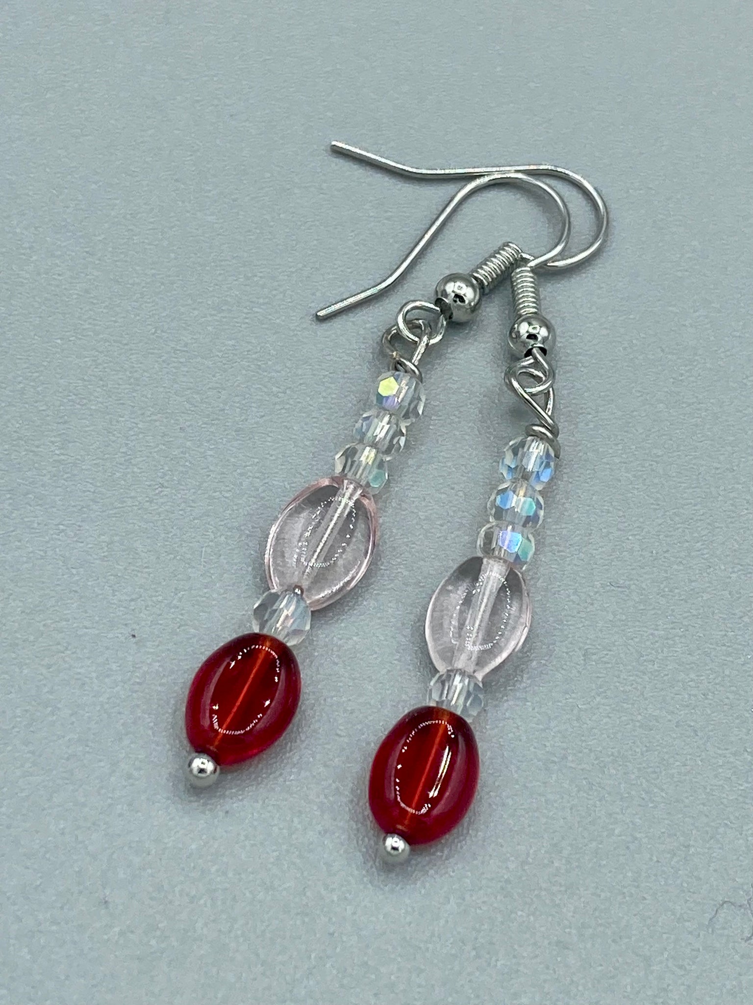 Light Pink Glass Earrings are 1 1/2 in height