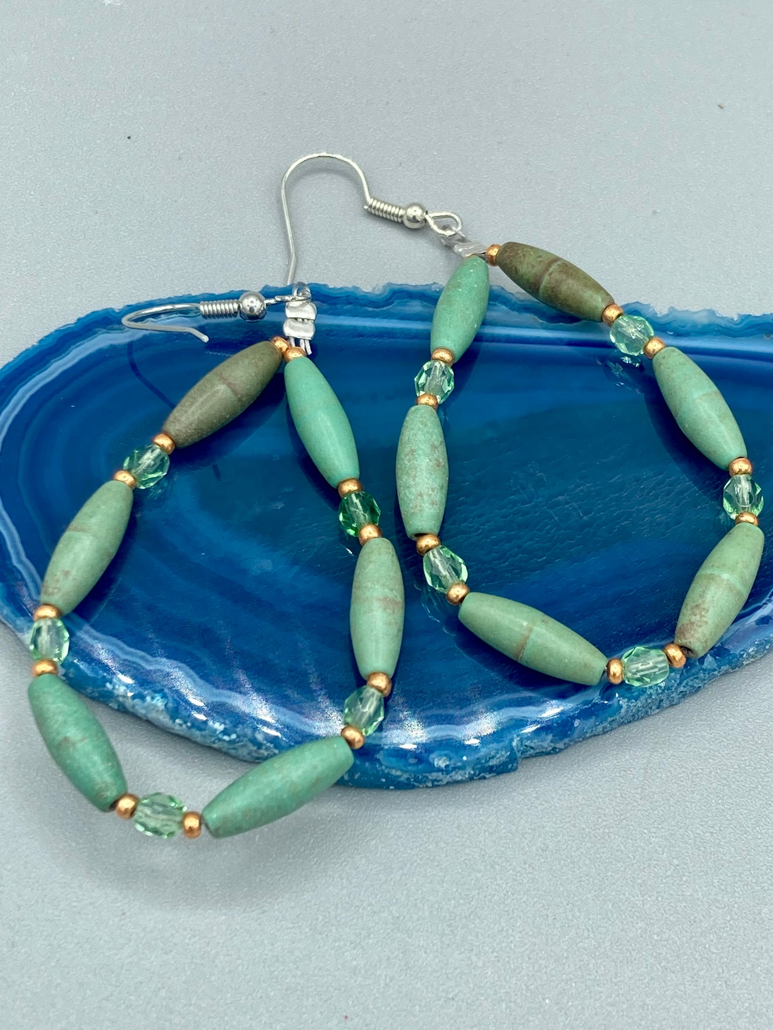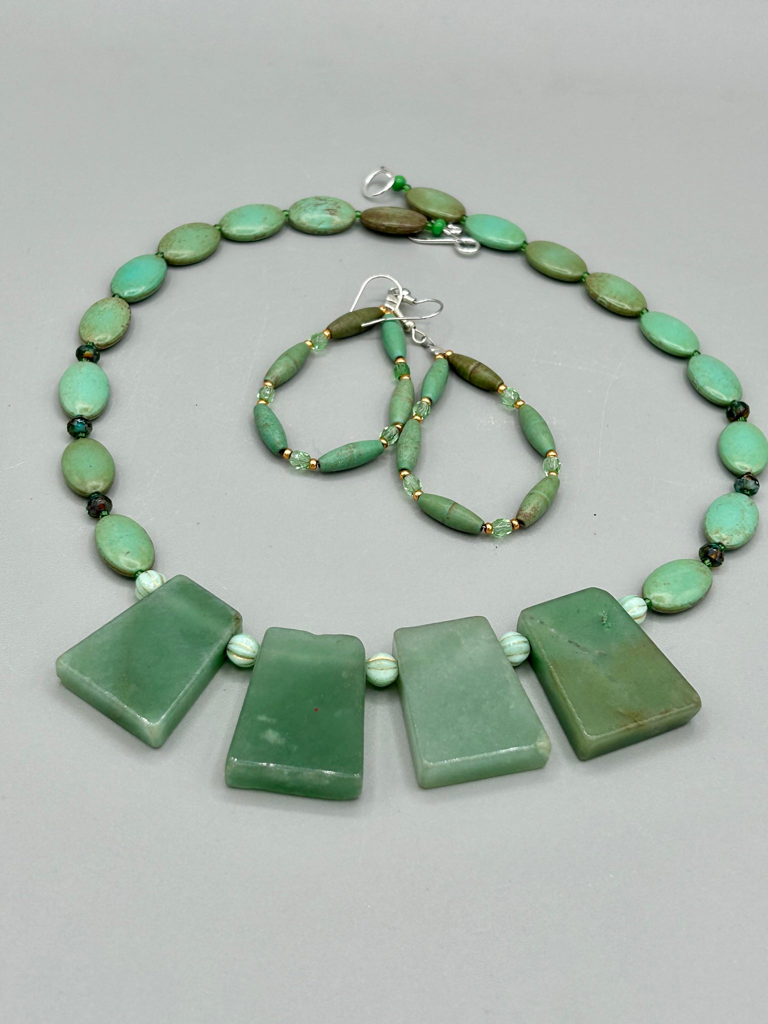 Green Magnesite Earrings: 2 1/2" length