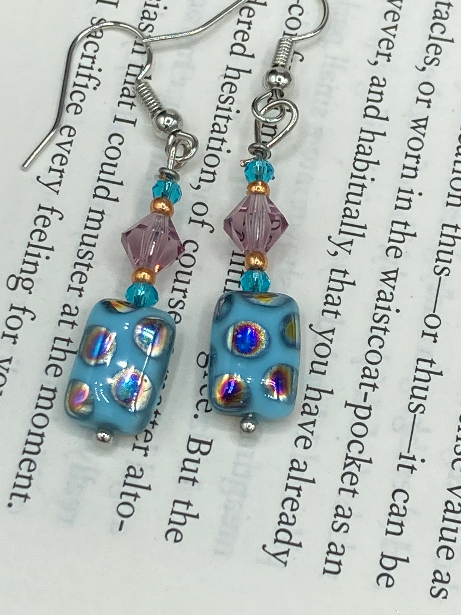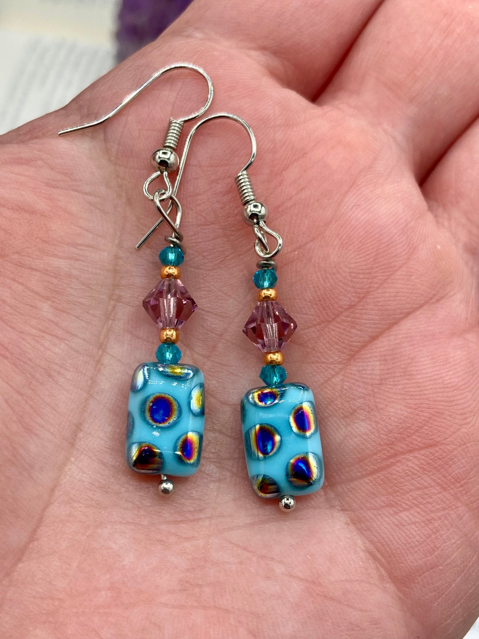 Blue Earrings: 1 ” in length