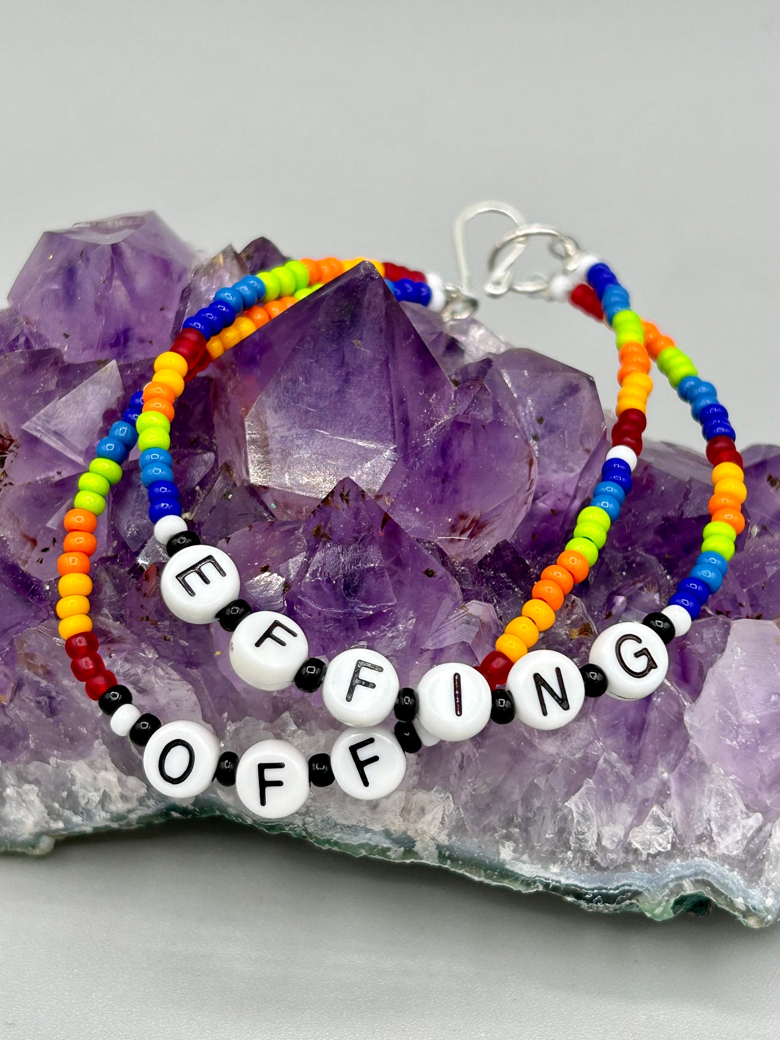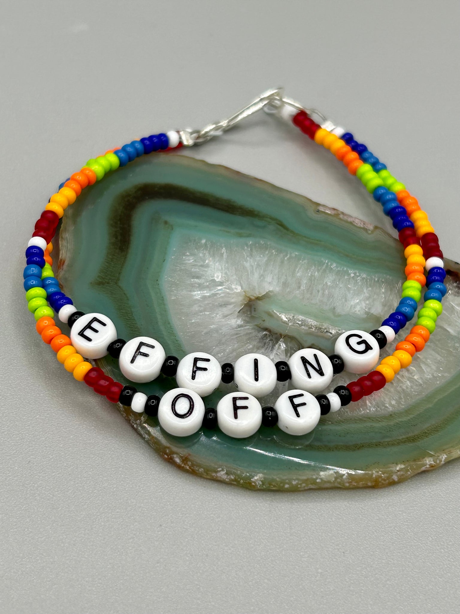 Sassy, sarcastic, fabulous rainbow bracelets. Metal wire with hook-eye clasp.