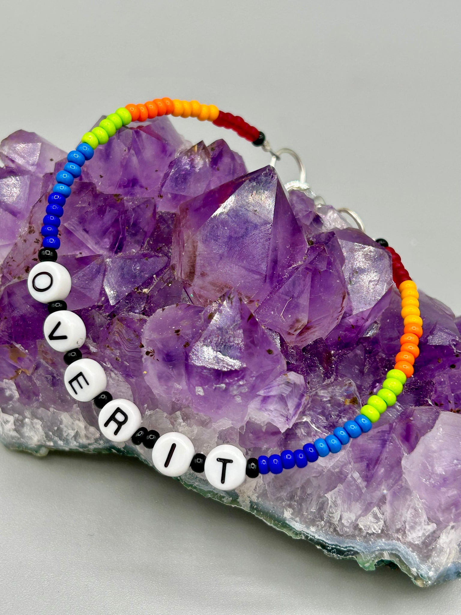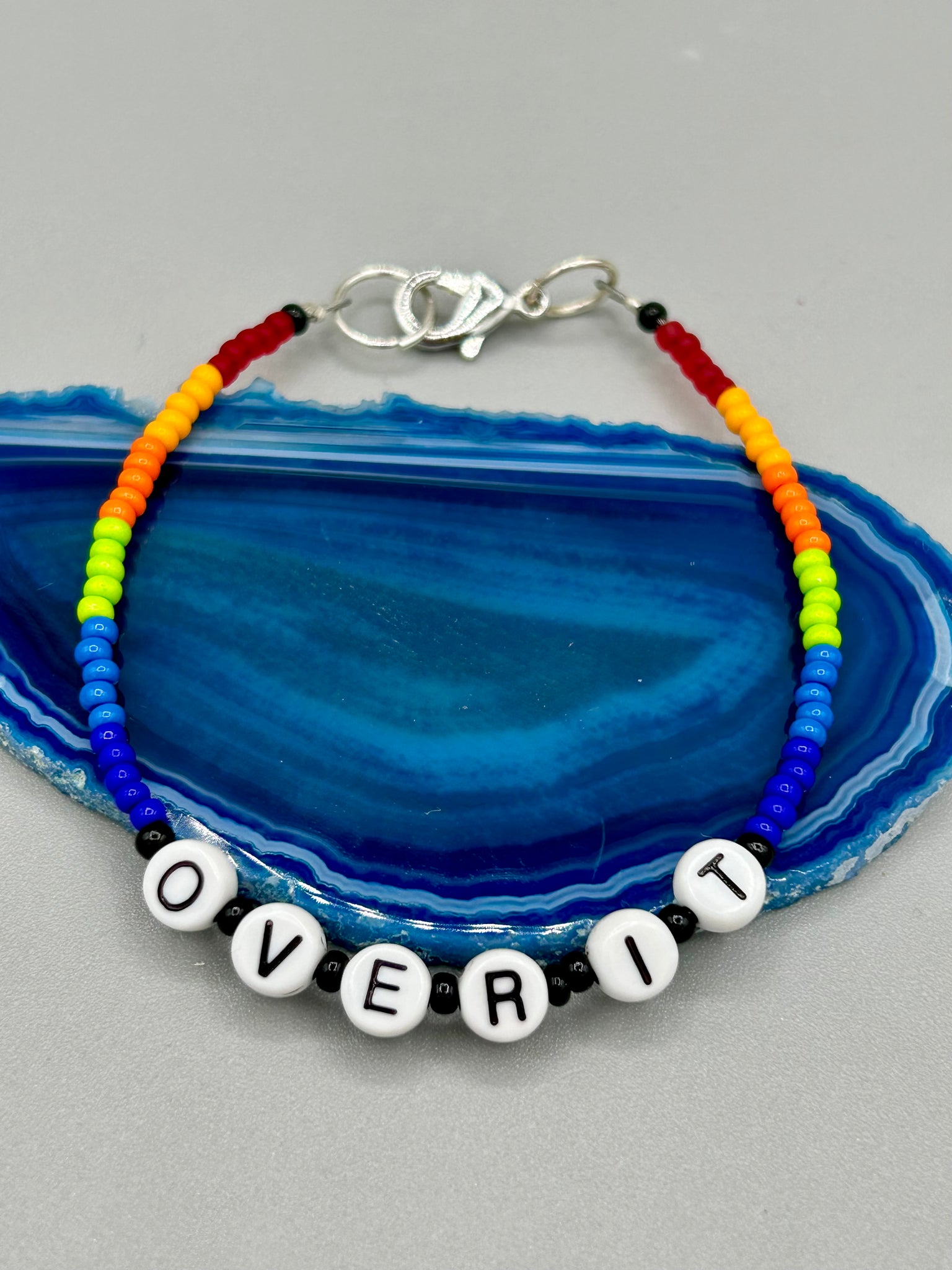 Sassy, sarcastic, fabulous rainbow bracelets. Metal wire with lobster clasp.